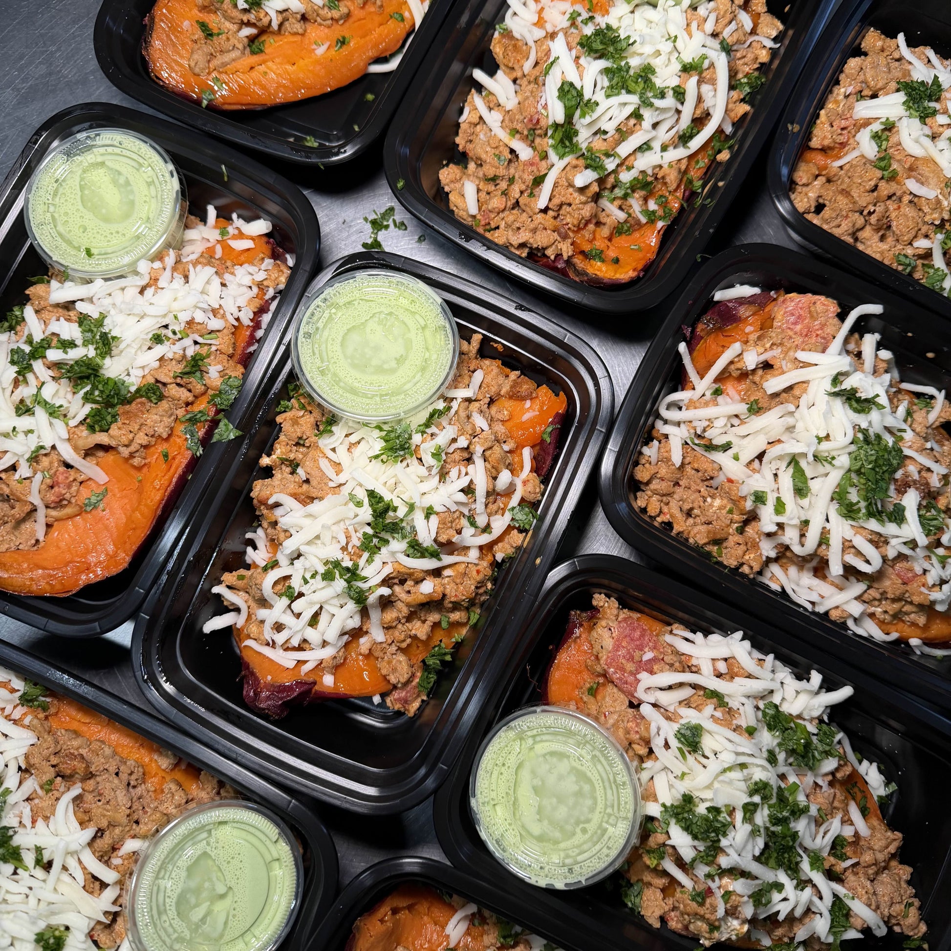 A roasted sweet potato stuffed with shredded chicken, black beans, corn, and creamy chipotle sauce. Sweet, savory, and satisfying.